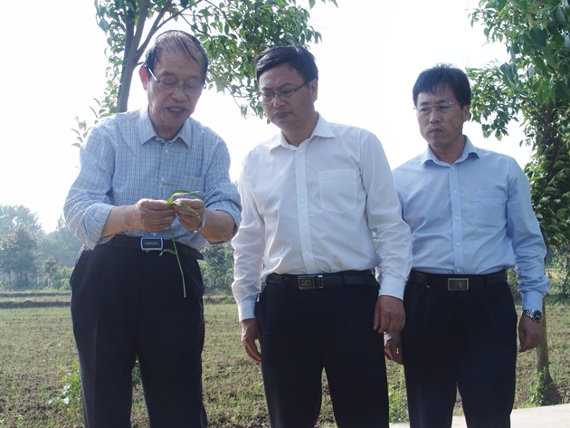 在聽(tīng)取匯報和察看了再生稻的長(cháng)勢情況后,凌啟鴻教授就當前再生稻精確定量栽培技術(shù)上需要注意的問(wèn)題和下一步的工作重點(diǎn)進(jìn)行了詳細分析和講解。他指出,目前試驗重點(diǎn)是應通過(guò)曬田控制好有效穗數量,保證達到合理的群體,在孕穗期及時(shí)追施好穗肥和粒肥,最利于頭季稻產(chǎn)量的增加,在頭季稻收獲前及時(shí)追施促芽肥。凌啟鴻教授對市農科院開(kāi)展的再生稻栽培技術(shù)試驗給予了高度評價(jià),認為技術(shù)路線(xiàn)正確、措施得當、工作扎實(shí)、效果明顯,他很希望我院繼續加強豫南區域的再生稻精確定量栽培本土化研究,做好再生稻栽培技術(shù)研究與示范推廣,為保障國家糧食安全、農民增收、農業(yè)增效做出應有貢獻。