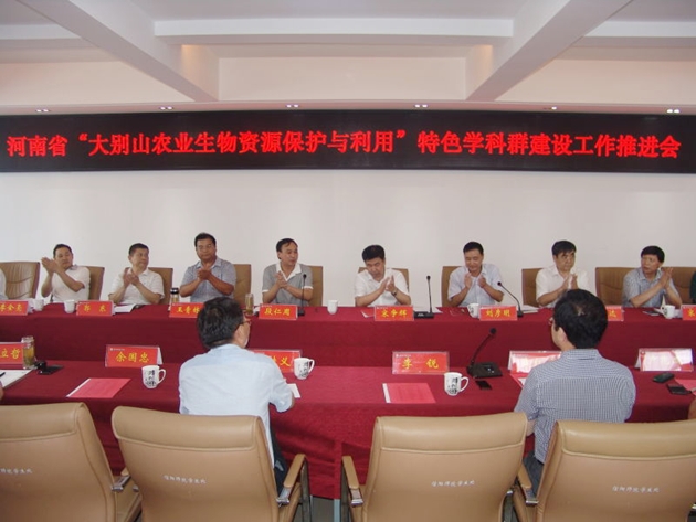 6月22日, “大別山農業(yè)生物資源保護與利用”省級特色學(xué)科群建設工作推進(jìn)會(huì )在信陽(yáng)師范學(xué)院逸夫樓三樓會(huì )議室召開(kāi)。信陽(yáng)師范學(xué)院校長(cháng)宋爭輝、我院院長(cháng)段仁周等出席會(huì )議。信陽(yáng)師范學(xué)院、我院、信陽(yáng)農林學(xué)院等學(xué)科群建設單位的有關(guān)領(lǐng)導和專(zhuān)家60余人出席會(huì )議。信陽(yáng)師范學(xué)院副校長(cháng)、大別山農業(yè)生物資源保護與利用研究院院長(cháng)劉彥明主持了會(huì )議。