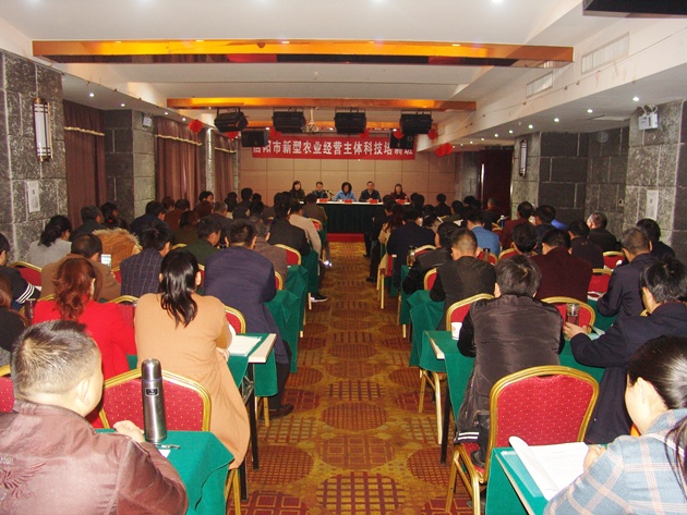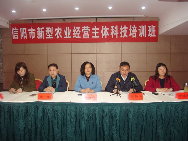 為提升新型農業(yè)經(jīng)營(yíng)主體的科技應用能力和經(jīng)營(yíng)管理能力,實(shí)施精準化培訓,4月12號,我院與市委農辦、信陽(yáng)市農民大學(xué)聯(lián)合舉辦信陽(yáng)市新型農業(yè)經(jīng)營(yíng)主體科技培訓會(huì ),信陽(yáng)農林學(xué)院、市委農辦及我院有關(guān)領(lǐng)導出席了會(huì )議,我市各縣區有關(guān)單位負責同志和全市規模以上從事現代農業(yè)生產(chǎn)經(jīng)營(yíng)者、種植大戶(hù)、農民合作社骨干等新型農業(yè)經(jīng)營(yíng)代表共計140多人參加了此次培訓。信陽(yáng)農林學(xué)院副校長(cháng)尹新明主持開(kāi)班儀式并對培訓提出了要求。