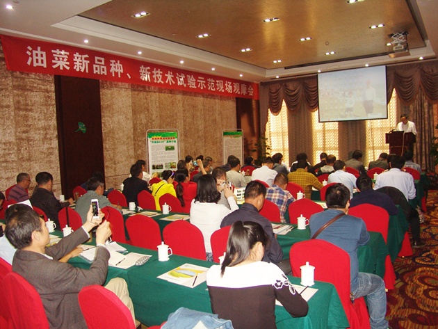 在下午舉行的油菜新品種新技術(shù)試驗示范集成新技術(shù)專(zhuān)題報告會(huì )上,廖慶喜教授、黃鳳洪研究員、程曉暉博士、周廣生教授、張椿雨教授先后作了“油菜生產(chǎn)機械化技術(shù)裝備研究與思考”、“高品質(zhì)濃香菜籽油加工技術(shù)”、“油菜產(chǎn)中管理及菌核病防治輕簡(jiǎn)化、機械化、集成化技術(shù)”、“飼料油菜生產(chǎn)與利用”、“油菜抗根腫病資源創(chuàng )新與利用”的專(zhuān)題報告,并現場(chǎng)解答了有關(guān)問(wèn)題。田建華研究員在會(huì )上正式宣布了上午的測產(chǎn)結果,在今年氣候條件嚴重不利的條件下,華雜油62等3個(gè)油菜新品種平均畝產(chǎn)均突破了200公斤,表現良好,為我市油菜生產(chǎn)提供了有力的品種支持。