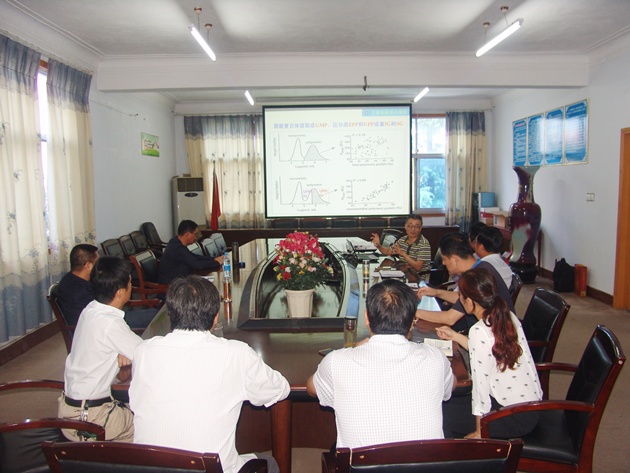 座談會(huì )后,王道文還作了《小麥面筋品質(zhì)遺傳控制的解析與分子改良》的學(xué)術(shù)報告,介紹了小麥蛋白的種類(lèi)及對人體的作用,圍繞兩種蛋白采用離子束誘變、化學(xué)誘變等方法創(chuàng )制多種含有優(yōu)異變異基因的新材料,并將國內外多種優(yōu)異變異的新材料聚合在目前生產(chǎn)上推廣的多個(gè)小麥品種中,繼續創(chuàng )制復合突變體,培育出了一系列具有較高實(shí)用價(jià)值的優(yōu)異新材料、新品系。報告內容涉及面廣,研究水平高,內容新穎,為我院更好地開(kāi)展小麥科研提供了有益的方法和經(jīng)驗。