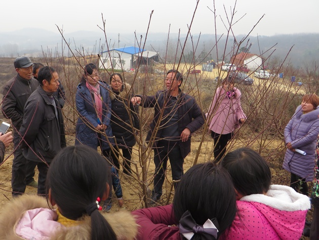 在馬畈鎮觀(guān)五玫小雜果農業(yè)專(zhuān)業(yè)合作社,專(zhuān)家們?yōu)楹献魃缂夹g(shù)人員和周邊桃樹(shù)種植戶(hù)舉辦了一場(chǎng)桃樹(shù)標準化生產(chǎn)技術(shù)培訓會(huì ),現場(chǎng)講解冬季桃樹(shù)修剪技術(shù)和水肥管理技術(shù),并發(fā)放了技術(shù)資料。對種植戶(hù)不易掌握的不同樹(shù)齡、不同枝條的修剪方法,專(zhuān)家又帶領(lǐng)大家前往桃園,進(jìn)行實(shí)地操作指導,手把手傳授Y字形、自然開(kāi)心形和主干形桃樹(shù)等省工化修剪技術(shù)。專(zhuān)家的培訓進(jìn)一步增強了當地群眾種好桃樹(shù)、脫貧致富的信心,受到了他們的熱烈歡迎。