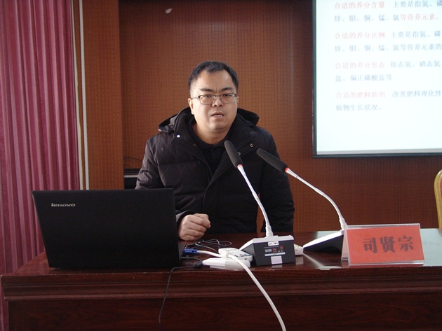 湯豐收研究員在會(huì )上做了《我國花生生產(chǎn)趨勢》的報告,簡(jiǎn)要介紹了我國農業(yè)發(fā)展現狀、我國農業(yè)供給側結構改革的基本原則和措施、花生的特點(diǎn)、花生在我國農業(yè)生產(chǎn)中地位、我國花生生產(chǎn)現狀、花生生產(chǎn)的發(fā)展趨勢,重點(diǎn)介紹了高油酸花生的定義、特點(diǎn)和黃曲霉素污染防控措施以及花生機械化生產(chǎn)模式。兩個(gè)專(zhuān)題負責人王振宇副研究員和司賢宗博士也分別在培訓會(huì )上做了《花生主要病蟲(chóng)害發(fā)生現狀及綠色防控對策》和《花生高效施肥技術(shù)》的報告。專(zhuān)家們精彩的講解吸引著(zhù)大家聚精會(huì )神地聽(tīng)講,讓與會(huì )人員及時(shí)了解了國外農業(yè)發(fā)展及花生生產(chǎn)現狀,對國內花生產(chǎn)業(yè)發(fā)展現狀、存在問(wèn)題及今后發(fā)展方向有了深刻的認識,讓與會(huì )人員聽(tīng)的津津有味,回味無(wú)窮,受益匪淺。