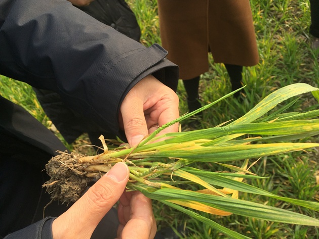 針對當前存在的田間濕度較大的問(wèn)題,李向東提出了指導性的田間管理意見(jiàn)。李向東特別指出,隨著(zhù)氣溫回升,麥田雜草及病蟲(chóng)害也進(jìn)入多發(fā)重發(fā)期,要抓住雜草防治的最后關(guān)鍵期合理用藥,重點(diǎn)防治豬殃殃、看麥娘、野燕麥等田間雜草,及時(shí)防治小麥紋枯病和條銹病等病害。