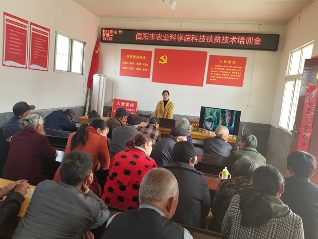 3月18日,我院小麥專(zhuān)家周?chē)诟毖芯繂T、花生專(zhuān)家余明慧副研究員、水稻專(zhuān)家申觀(guān)望副研究員等一行4人趕赴本院對口幫扶村——息縣小茴店鎮張老莊村開(kāi)展科技扶貧技術(shù)培訓和小麥生產(chǎn)服務(wù)活動(dòng),張老莊村30多戶(hù)種麥戶(hù)和農戶(hù)、村干部等40余人參加了培訓。