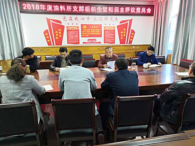 會(huì )上,支部書(shū)記石守設同志首先回顧了一年來(lái)油料所黨建工作開(kāi)展情況,對學(xué)習貫徹習近平新時(shí)代中國特色社會(huì )主義思想及黨的十九大精神、廉潔自律情況、“三會(huì )一課”落實(shí)、主題黨日活動(dòng)開(kāi)展、黨員隊伍建設等方面進(jìn)行了匯報總結。本次會(huì )議主題定為“勇于擔當,做新時(shí)代合格黨員”,隨后,圍繞這個(gè)主題,黨支部書(shū)記石守設同志帶頭進(jìn)行自我評議,與會(huì )的黨員同志以個(gè)人自評、黨員互評的方式開(kāi)展批評和自我批評,鄒俊同志作出了點(diǎn)評,對此次年度組織生活會(huì )給予了充分肯定,指出今后要加強支部?jì)炔康臏贤,要求黨員之間要相互監督,幫助同志進(jìn)步,增強大家的向心力和凝聚力,為今后工作的更好開(kāi)展打下了基礎。
