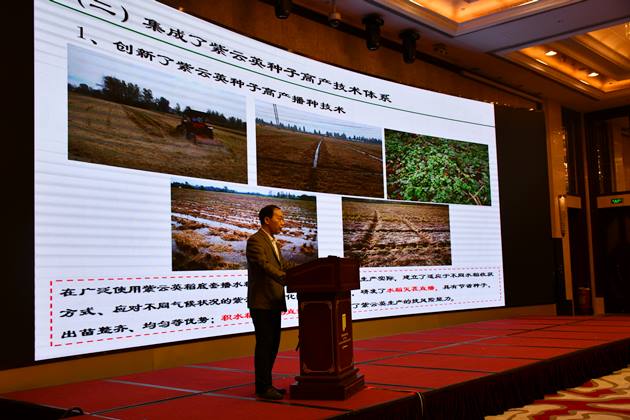 4月10日至4月11日,與會(huì )專(zhuān)家代表還先后實(shí)地觀(guān)摩了羅山縣子路鎮問(wèn)津種養殖合作社的紫云英高產(chǎn)種植技術(shù)、紫云英輪換倒茬技術(shù)模式、“綠肥+”清潔稻米生產(chǎn)基地建設,光山縣孫鐵鋪鎮盛世源專(zhuān)業(yè)合作社的稻后板田滅茬播種技術(shù)、專(zhuān)性紫云英根瘤菌應用技術(shù)、紫云英營(yíng)養調控技術(shù),市農科院的綠肥位試驗和紫云英育種現場(chǎng)以及固始縣天豐種業(yè)科技公司的機收免播模式、微肥增產(chǎn)模式、適期收獲技術(shù)和紫云英種子加工設備、流程,對紫云英綠肥生產(chǎn)與利用的相關(guān)使用技術(shù)進(jìn)行了交流和討論。