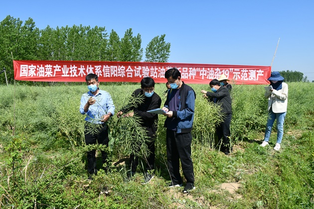4月28日,國家油菜產(chǎn)業(yè)技術(shù)體系信陽(yáng)綜合試驗站邀請有關(guān)專(zhuān)家,在平橋區明港鎮新集村兵建種植專(zhuān)業(yè)合作社對油菜新品種“中油雜19”“中油雜39”“大地199”進(jìn)行了現場(chǎng)考察和理論測產(chǎn)。