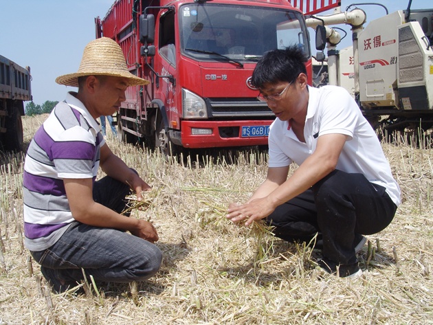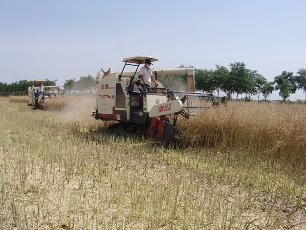 合作社負責人劉建兵不時(shí)地俯下身子,看看粉碎后的秸桿、檢查一下地面落粒情況,他高興地說(shuō):“機收油菜,速度快,成本低,油菜籽損失少,碎秸稈后還田,大幅增加了土地有機質(zhì)含量,減少肥料的使用,降低了后續作物的生產(chǎn)成本。今年合作社種植的是由試驗站提供的中油雜19、中油雜39、大地199等油菜新品種,這些品種非常適宜機械化收獲,產(chǎn)量、油品和含油量很高,產(chǎn)量可達270公斤以上,含油量超過(guò)50%,而且抗倒、抗病、抗裂角,今年通過(guò)品種篩選和實(shí)行機械化收獲,預計每畝可節本增收近600元,絕對是個(gè)豐收年。”