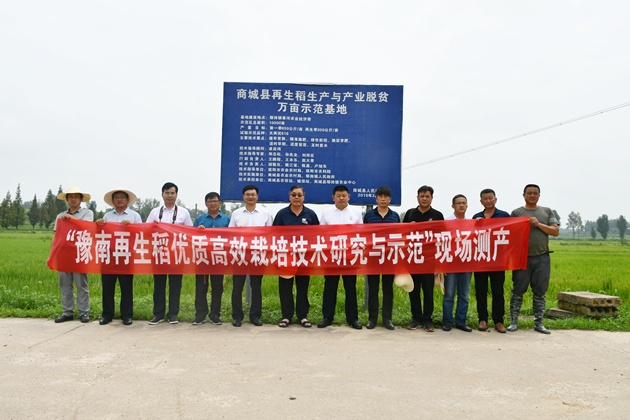 當前,我市再生稻的頭季已進(jìn)入收獲期,8月8日,由我院舉辦的信陽(yáng)市創(chuàng )新應用專(zhuān)項“豫南再生稻優(yōu)質(zhì)高效栽培技術(shù)研究與示范”現場(chǎng)測產(chǎn)會(huì )在商城縣鄢崗鎮曹寨村召開(kāi),來(lái)自河南省農業(yè)科學(xué)院、信陽(yáng)農林學(xué)院、信陽(yáng)市農業(yè)農村局、新鄉市農業(yè)科學(xué)院、南陽(yáng)市農業(yè)科學(xué)院等科研院所高等院校的專(zhuān)家對該村再生稻示范片頭季的產(chǎn)量進(jìn)行了現場(chǎng)測產(chǎn)。