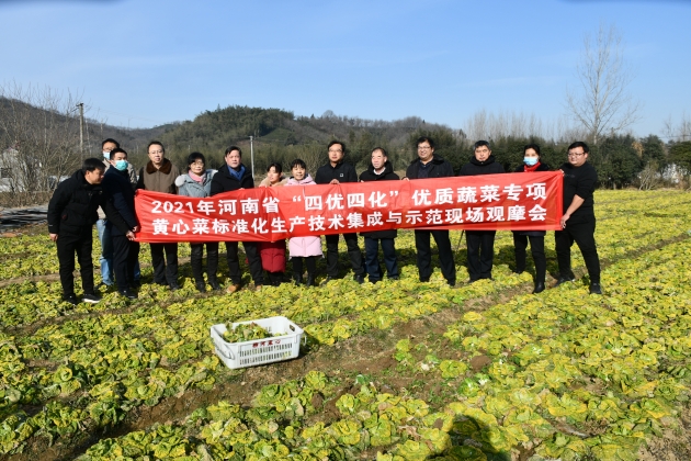 1月9日,河南省“四優(yōu)四化”優(yōu)質(zhì)蔬菜專(zhuān)項黃心菜標準化生產(chǎn)技術(shù)集成與示范現場(chǎng)觀(guān)摩會(huì )在浉河區柳河翠蔬菜專(zhuān)業(yè)合作社召開(kāi)。河南省“四優(yōu)四化”優(yōu)質(zhì)蔬菜專(zhuān)項負責人、中原學(xué)者張曉偉研究員,省農科院原玉香研究員、王志勇副研究員,我院副院長(cháng)王青林、總農藝師段斌出席會(huì )議,市蔬菜辦、市種子管理站、市農產(chǎn)品質(zhì)檢中心、信陽(yáng)農林學(xué)院、浉河區農檢站等相關(guān)工作人員和蔬菜專(zhuān)業(yè)合作社負責人以及蔬菜種植戶(hù)共60余人參加了觀(guān)摩會(huì )。