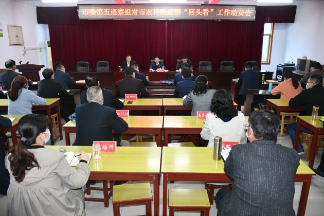 根據市委巡察工作統一部署,4月20日下午,市委第五巡察組對市農科院巡察“回頭看”工作動(dòng)員會(huì )召開(kāi)。市委第五巡察組組長(cháng)丁東升、副組長(cháng)陳芳和巡察組成員,市紀委監委駐市農業(yè)農村局紀檢監察組成員,市農科院領(lǐng)導班子成員、各科室研究所正科級干部、兩個(gè)二級機構全體負責同志參加了會(huì )議。