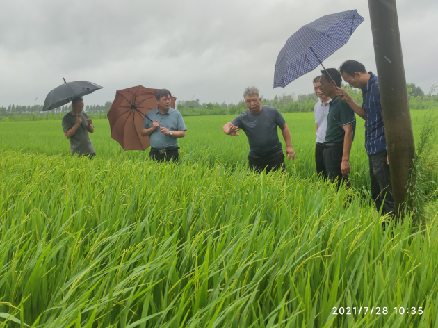 根據省科技廳《關(guān)于組織全省科技特派員開(kāi)展救災復產(chǎn)科技服務(wù)活動(dòng)的通知》、市科技局《關(guān)于組織開(kāi)展信陽(yáng)科技特派員救災復產(chǎn)科技行動(dòng)的通知》等有關(guān)文件精神要求,立足減災抗災奪豐收,突出田間管理。7月28-29日,信陽(yáng)市優(yōu)質(zhì)水稻產(chǎn)業(yè)科技特派員服務(wù)團在信陽(yáng)市農科院段斌總農藝師的帶領(lǐng)下,水稻所扶定副研究員、徐士庫副研究員、余貴龍助理研究員等一行4人,針對汛期頻繁發(fā)生大雨、暴雨可能給我市水稻生產(chǎn)造成不利影響,服務(wù)團親臨一線(xiàn)調研,及時(shí)開(kāi)展現場(chǎng)指導及相關(guān)技術(shù)培訓服務(wù)。