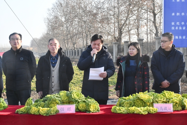 1月6日-7日,由我院主辦的河南省“四優(yōu)四化”科技支撐行動(dòng)計劃優(yōu)質(zhì)蔬菜專(zhuān)項黃心菜優(yōu)質(zhì)高效標準化生產(chǎn)技術(shù)集成與示范培訓暨示范觀(guān)摩會(huì )在信陽(yáng)召開(kāi)。中原學(xué)者、河南省“四優(yōu)四化”優(yōu)質(zhì)蔬菜專(zhuān)項負責人張曉偉研究員、露地蔬菜產(chǎn)區化肥減施提效計劃專(zhuān)題負責人王志勇副研究員、院總農藝師段斌出席會(huì )議。信陽(yáng)市農業(yè)農村局、浉河區農業(yè)農村局、平橋區農業(yè)農村局及各鄉鎮農技推廣人員、信陽(yáng)市及周邊蔬菜園區、合作社負責人、種植大戶(hù)、媒體記者等70余人參加會(huì )議。