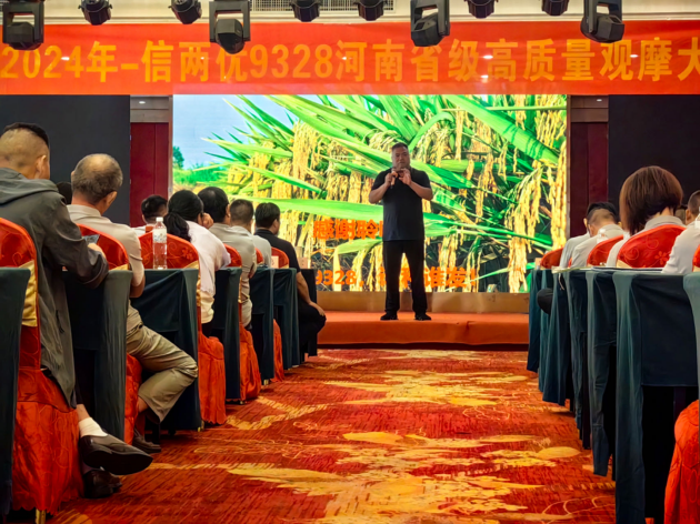 為助力信陽(yáng)水稻高質(zhì)量發(fā)展,9月8日,由國家水稻產(chǎn)業(yè)技術(shù)體系信陽(yáng)綜合試驗站、河南省科技特派員服務(wù)隊、我院聯(lián)合合肥金谷荃銀種業(yè)有限公司主辦的2024年“信兩優(yōu)9328”河南省級高質(zhì)量觀(guān)摩大會(huì )在信陽(yáng)市固始縣成功舉辦。我院院長(cháng)鐘思志、總農藝師段斌,固始縣農業(yè)農村局負責同志,合肥金谷荃銀公司負責人以及種植大戶(hù)、經(jīng)銷(xiāo)商代表等150余人參加會(huì )議。