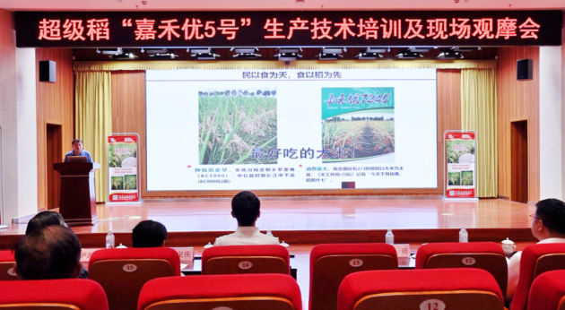 9月15日,超級稻“嘉禾優(yōu)5號”生產(chǎn)技術(shù)培訓及現場(chǎng)觀(guān)摩會(huì )在息縣成功舉辦,中國工程院院士、中國農業(yè)科學(xué)院院長(cháng)吳孔明以視頻形式作了致辭,崖州灣國家實(shí)驗室副主任、中國科學(xué)院院士錢(qián)前出席并作報告,中國水稻研究所副所長(cháng)、研究員王克劍主持,我院院長(cháng)鐘思志、縣委書(shū)記管保臣分別致辭,縣委副書(shū)記王文斌,中國水稻研究所,中國農科院中原研究中心,信陽(yáng)市部分市直單位相關(guān)負責人、專(zhuān)家代表,河南和安徽等各省經(jīng)銷(xiāo)商、企業(yè)、專(zhuān)業(yè)合作社及種糧大戶(hù)代表等參加。