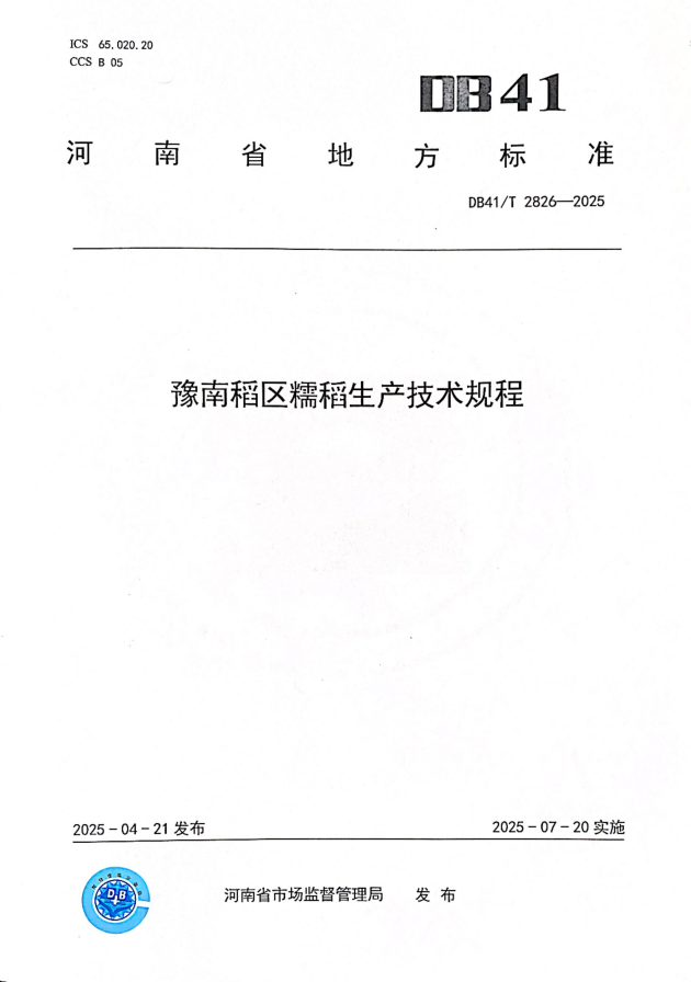 近日,由我院牽頭,聯(lián)合河南農業(yè)大學(xué)、潢川縣農科所、固始縣農業(yè)農村局等單位共同制定的河南省地方標準《豫南稻區糯稻生產(chǎn)技術(shù)規程》(標準號:DB41/T 2826-2025),經(jīng)河南省市場(chǎng)監督管理局批準正式發(fā)布,于2025年7月20日起實(shí)施。