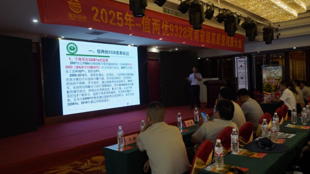 會(huì )議期間,國家水稻產(chǎn)業(yè)技術(shù)體系信陽(yáng)綜合試驗站站長(cháng)、河南省水稻產(chǎn)業(yè)技術(shù)體系首席專(zhuān)家、我院水稻所所長(cháng)扶定研究員,以《國審雜交秈稻信兩優(yōu)9328的選育及高產(chǎn)栽培技術(shù)》為題,詳細闡述了信兩優(yōu)9328的選育背景、品種特性、種植技術(shù)要點(diǎn)以及廣闊的市場(chǎng)前景,講解深入淺出、通俗易懂,為與會(huì )者提供了寶貴的專(zhuān)業(yè)知識和技術(shù)指導。公司營(yíng)銷(xiāo)團隊不僅對信兩優(yōu)9328的實(shí)際表現和市場(chǎng)潛力進(jìn)行了深入探討,還分享了水稻育種領(lǐng)域的最新科研成果。經(jīng)銷(xiāo)商與種植戶(hù)積極提問(wèn),同 專(zhuān)家們進(jìn)行了充分的交流,達到預期效果,并將會(huì )議氣氛推向高潮。