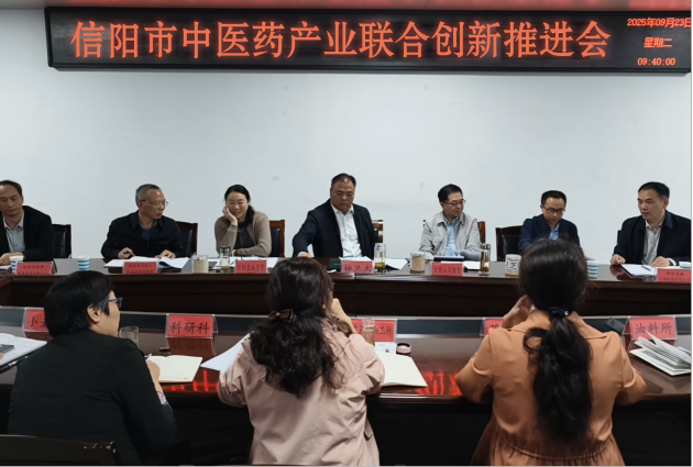 為進(jìn)一步推進(jìn)信陽(yáng)市中醫藥產(chǎn)業(yè)聯(lián)合創(chuàng )新中心建設,明確多方協(xié)作方向與分工,9月23日,信陽(yáng)市中醫藥產(chǎn)業(yè)聯(lián)合創(chuàng )新推進(jìn)會(huì )在我院召開(kāi),來(lái)自大別山實(shí)驗室、信陽(yáng)農林學(xué)院、信陽(yáng)職業(yè)技術(shù)學(xué)院、信陽(yáng)市大別山道地藥材研究院、新縣昱耀生物科技有限公司、信陽(yáng)田園夢(mèng)旅游發(fā)展有限公司等單位的負責同志和專(zhuān)家學(xué)者參加了會(huì )議。