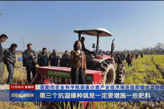 “立冬”已過(guò),寒意漸濃,信陽(yáng)小麥播種工作仍在持續。受秋季連續陰雨天氣影響,信陽(yáng)小麥播期普遍推遲,為穩定小麥面積,加快播種進(jìn)度,提高立苗質(zhì)量,為明年夏糧豐產(chǎn)豐收奠定堅實(shí)基礎。10月底以來(lái)國家小麥產(chǎn)業(yè)技術(shù)體系信陽(yáng)綜合試驗站站長(cháng)周?chē)跀y團隊成員先后赴羅山、息縣、淮濱、平橋區、商城縣等地,深入田間地頭多途徑指導小麥秋播。