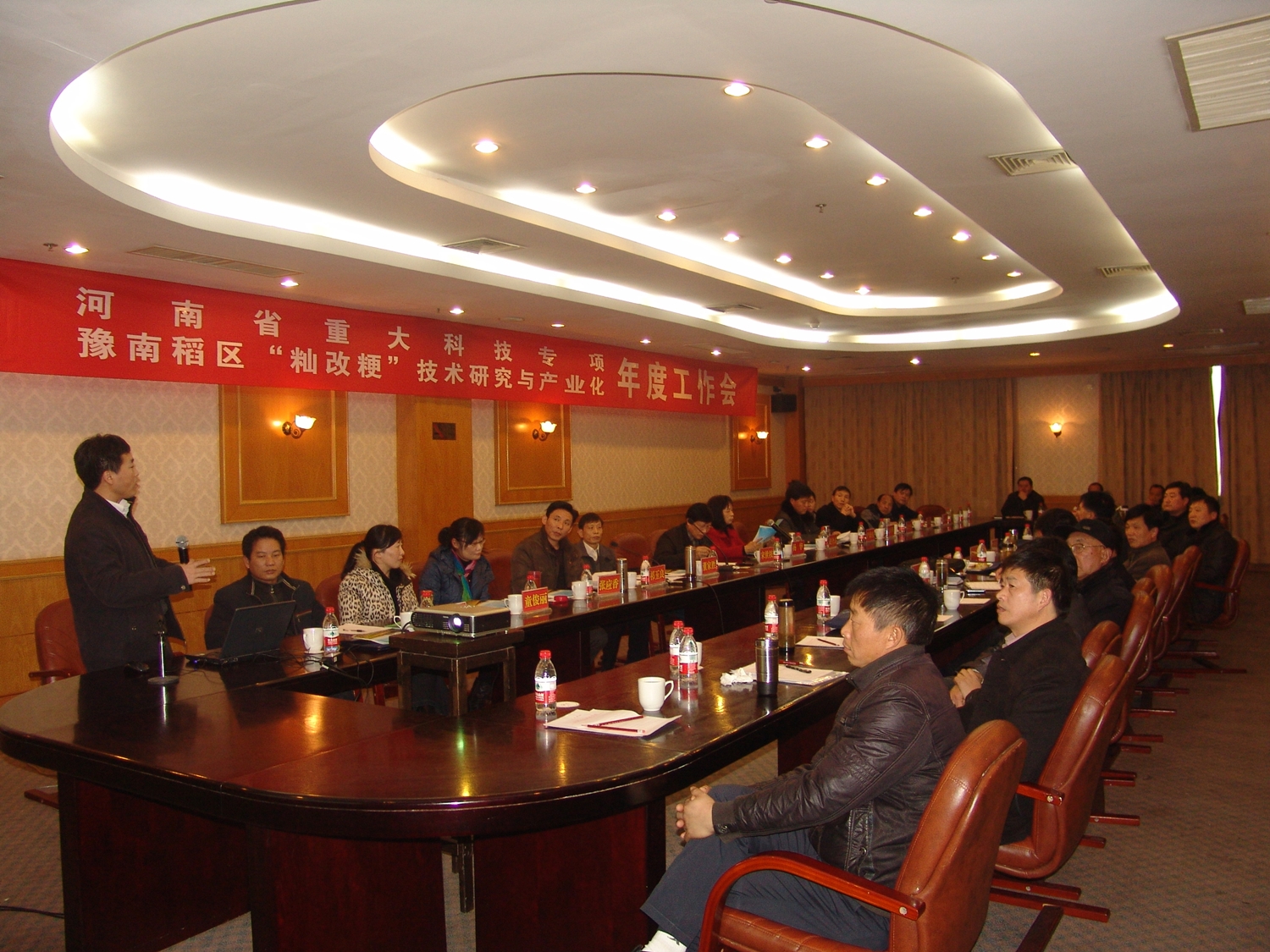 河南省重大科技專(zhuān)項“豫南稻區‘秈改粳'技術(shù)研究與產(chǎn)業(yè)化技術(shù)研究”2012年度總結會(huì )議12月10-11日在信陽(yáng)召開(kāi)。河南省農技推廣總站、河南農業(yè)大學(xué)、河南省農科院、駐馬店市農科院、信陽(yáng)市農科院、羅山、平橋、息縣、固始、淮濱、商城、潢川等縣區項目承擔單位的有關(guān)負責同志和技術(shù)人員以及部分種子糧食企業(yè)代表共60余人參加了會(huì )議。信陽(yáng)市科技局副局長(cháng)楊華出席會(huì )議并講話(huà)。