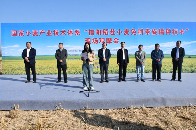 10月22日,由國家小麥產(chǎn)業(yè)技術(shù)體系、信陽(yáng)市人民政府主辦,我院、信陽(yáng)市農業(yè)農村局、息縣人民政府承辦,息縣宏升糧食制品有限公司協(xié)辦的國家小麥產(chǎn)業(yè)技術(shù)體系“信陽(yáng)稻茬小麥免耕帶旋播種現場(chǎng)觀(guān)摩暨技術(shù)培訓會(huì )”在息縣成功召開(kāi)。國家小麥產(chǎn)業(yè)技術(shù)體系首席科學(xué)家劉錄祥研究員、河南農業(yè)大學(xué)郭天財教授、信陽(yáng)市副市長(cháng)汪明君、院黨組書(shū)記李杰等出席會(huì )議。會(huì )議分現場(chǎng)觀(guān)摩和室內培訓兩個(gè)階段進(jìn)行,息縣縣委副書(shū)記、代縣長(cháng)鄭春,院長(cháng)鐘思志先后主持會(huì )議。