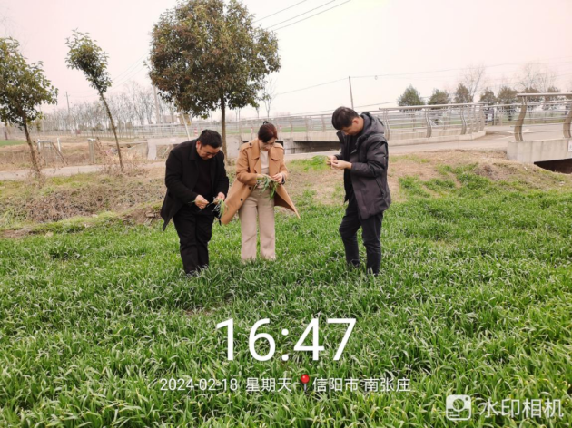 通過(guò)兩天時(shí)間的現場(chǎng)調研和電話(huà)溝通,了解到信陽(yáng)小麥目前大部分正處于返青起身期,有少部分旱茬種植春性品種播種較早田塊已開(kāi)始拔節。當前信陽(yáng)小麥苗情已很大程度得到了轉化,一二類(lèi)苗占比已達75%以上,目前整體苗情不錯,長(cháng)勢較好!”面對即將到來(lái)的寒潮天氣,周?chē)谔嵝艳r民朋友,做好清溝理墑確保溝系暢通,及時(shí)關(guān)注田間苗情分類(lèi)施策。未除草的田塊待寒潮天氣結束氣溫穩定在10℃左右再進(jìn)行化學(xué)除草,同時(shí)做好紋枯病、莖基腐、紅蜘蛛等病蟲(chóng)的害監測和防治。已拔節的或降溫前噴施除草劑的麥田需格外注意,如出現凍害或藥害要及時(shí)噴施蕓薹素內酯等進(jìn)行補救。